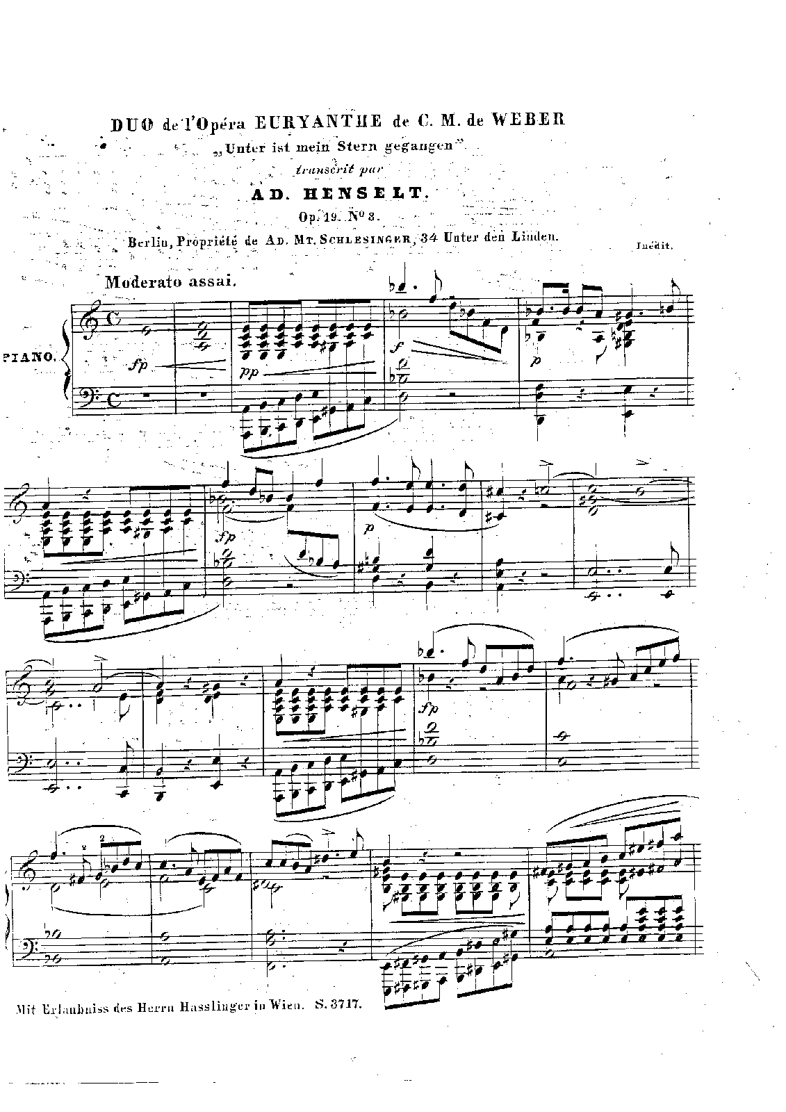 | Work Title | 10 Transcriptions from Weber's 'Oberon', 'Der Freischütz', and 'Euryanthe', Op.19 |