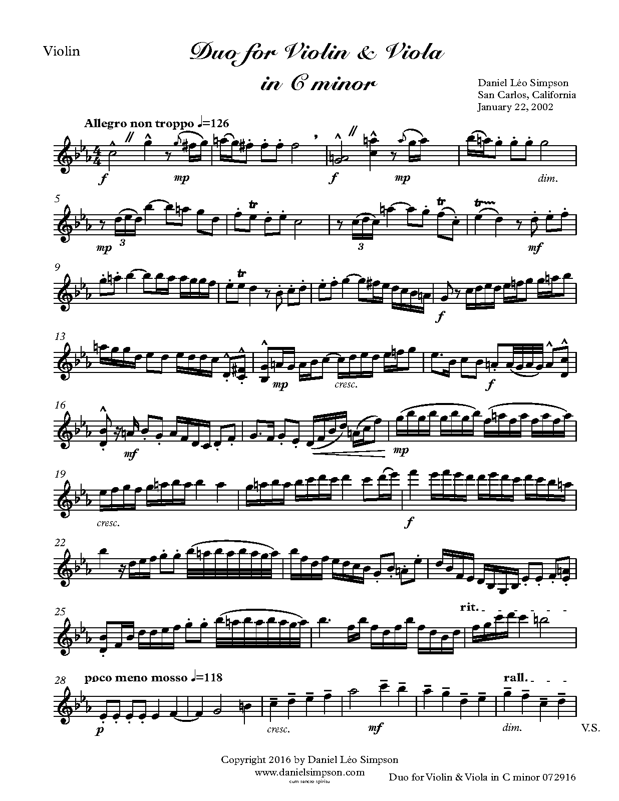 Duo for Violin and Viola in C minor (Simpson, Daniel Léo)