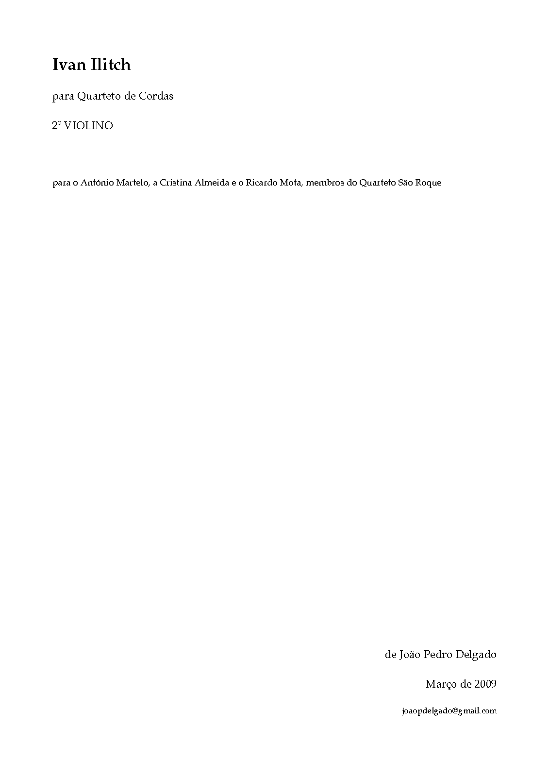 | Work Title | Ivan Ilitch, for String Quartet |