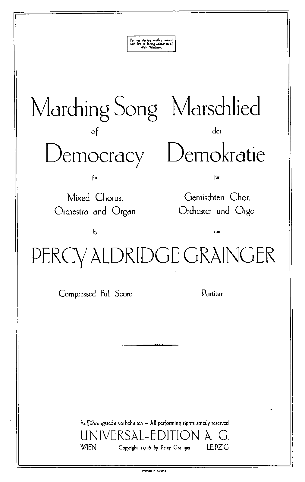 | Dedication | In loving adoration of Walt Whitman (1819–1892) |