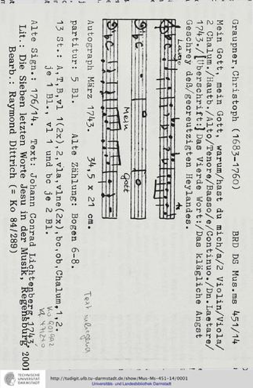 | Work Title | Mein Gott warum hast du mich verlassen, GWV 1123/43 |