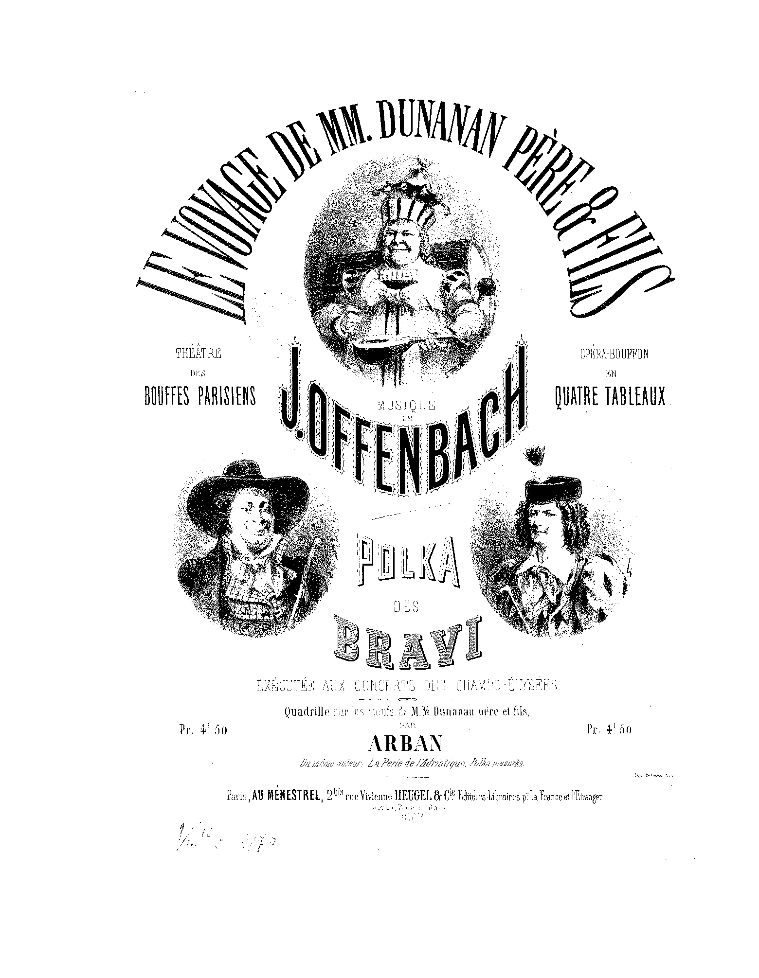 | Alternative. Title | Le voyage de MM. Dunanan père et fils. Opéra bouffon de J. Offenbach. Polka des bravi executée aux Concerts des Champs-Élysées |