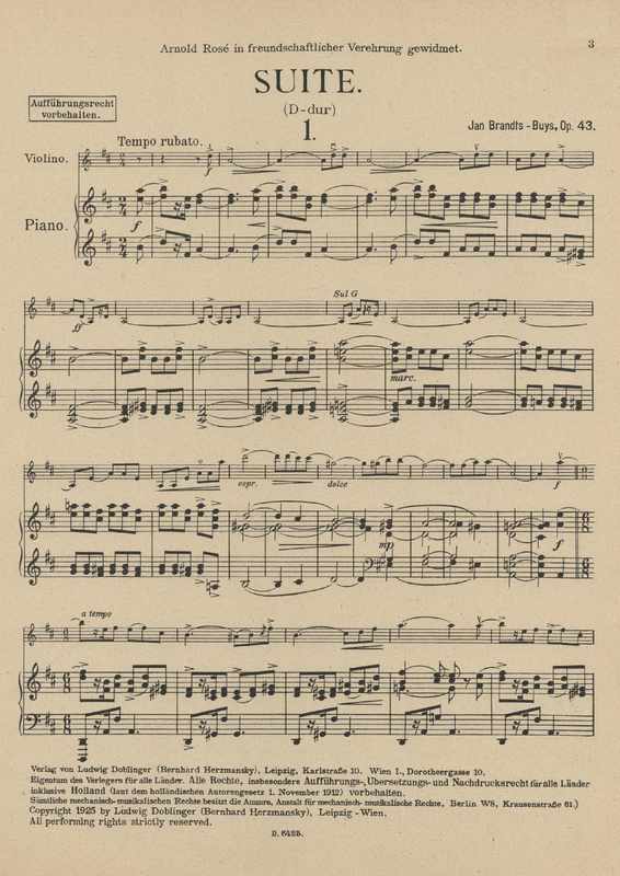 | Dedication | Arnold Rosé in freundschaftlicher Verehrung gewidmet. |