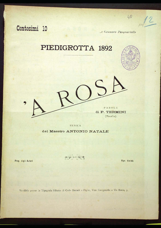 | First Performance. | 1892-09-07 – Naples, Festa di Piedigrotta |