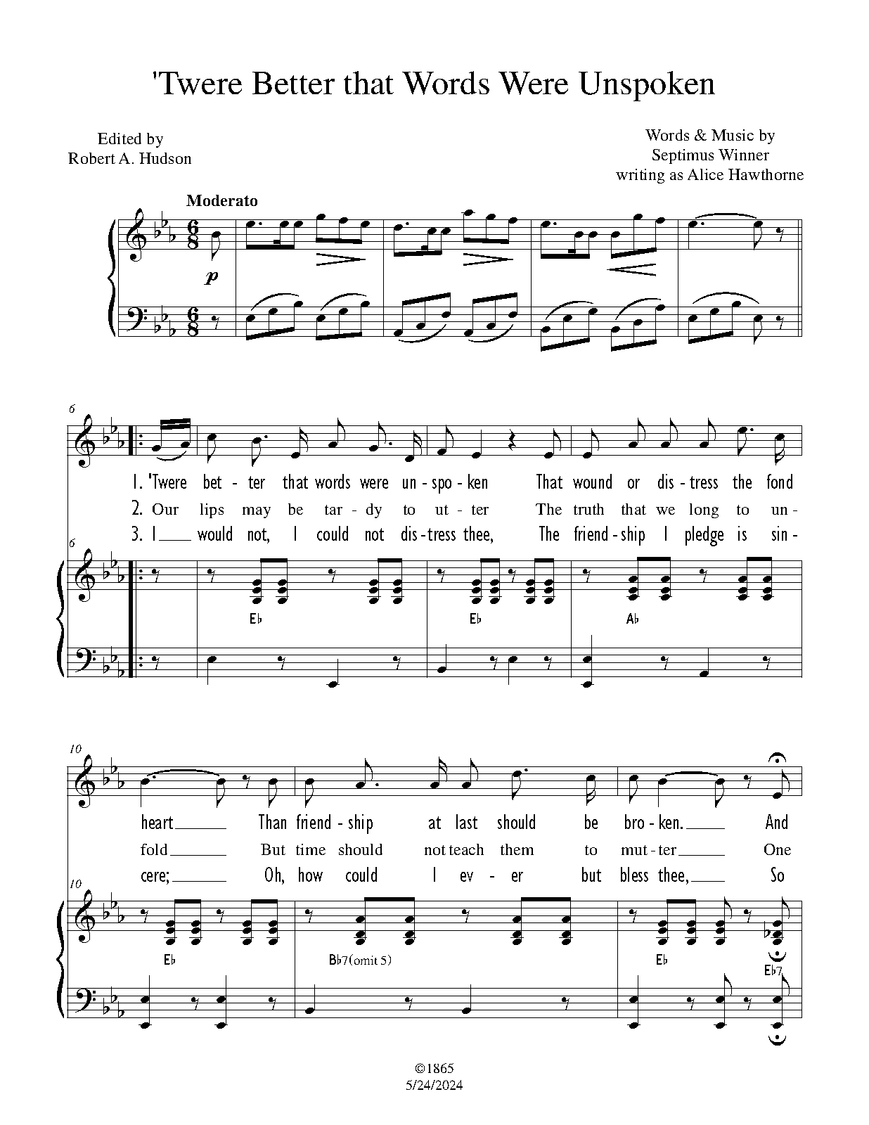 | Work Title | 'Twere Better that Words Were Unspoken |
