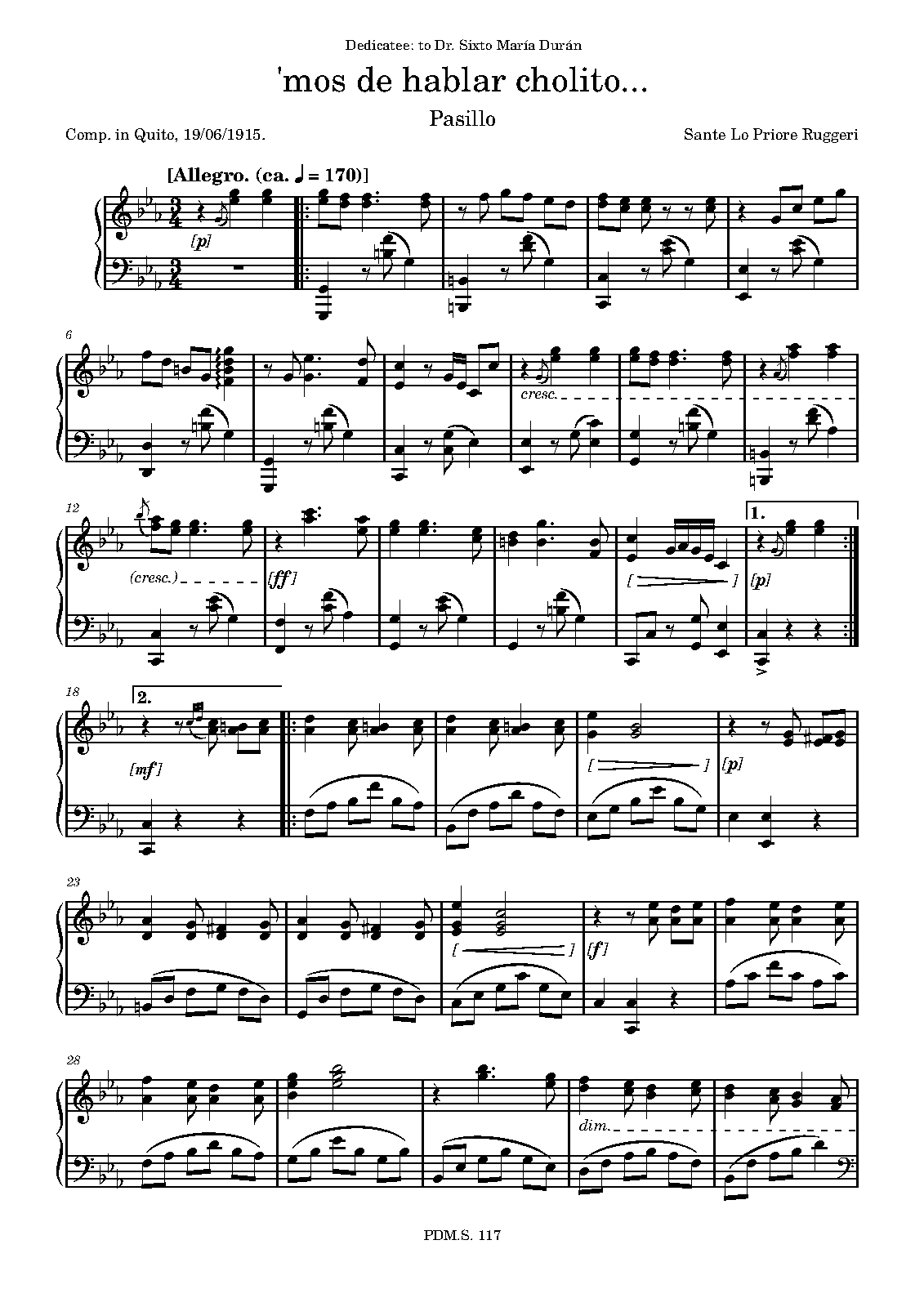 | Dedication | al Dr. Sixto María Durán, Director del Conservatorio de Música de Quito. |