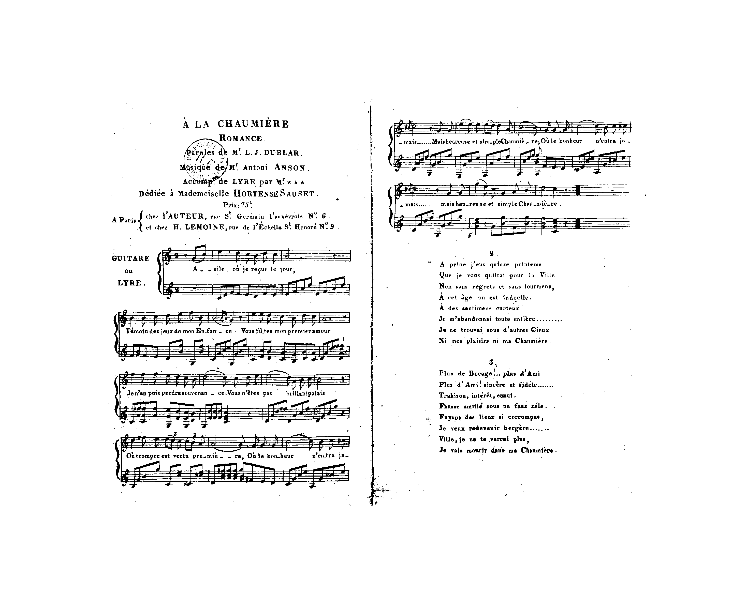 | Dedication | à Mademoiselle Hortense Sauset |