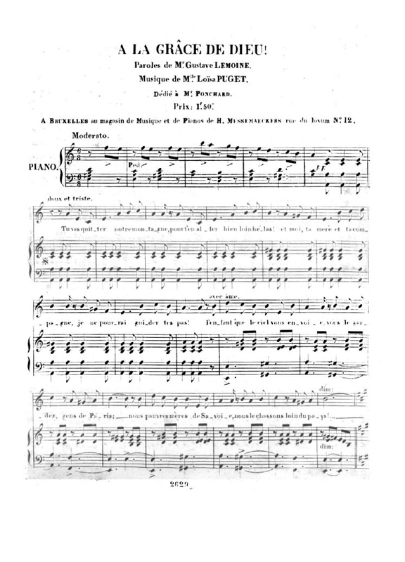 | Extra Information | Wikipedia note: In 1841 Lemoine and Adolphe d'Ennery wrote a melodrama based on Puget's most successful song À la grâce de Dieu, which provided the idea for Donizetti's Linda di Chamounix. Mayseder wrote Fantaisie brillante based on this work. |