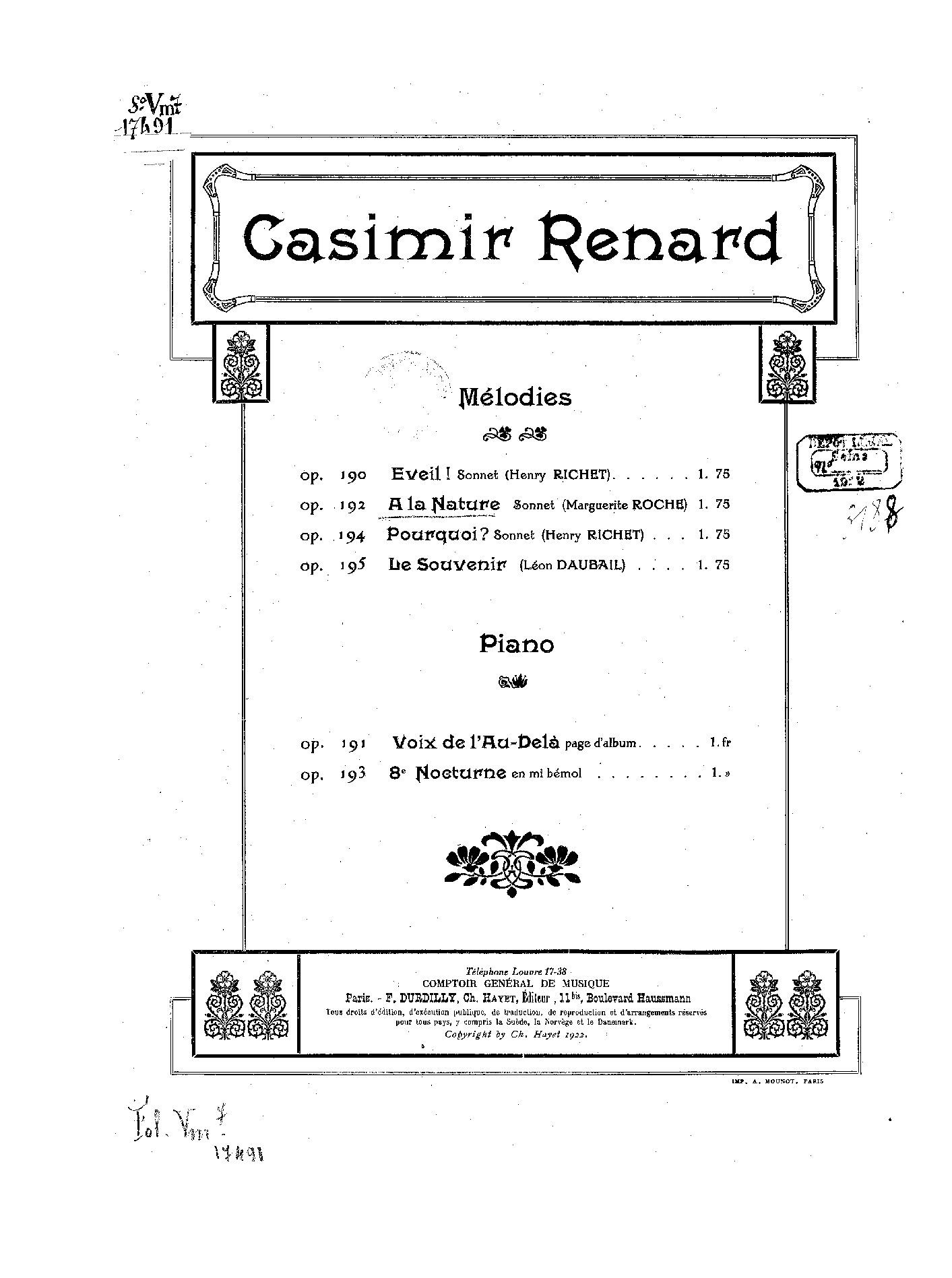 | Composer | Renard, Casimir |