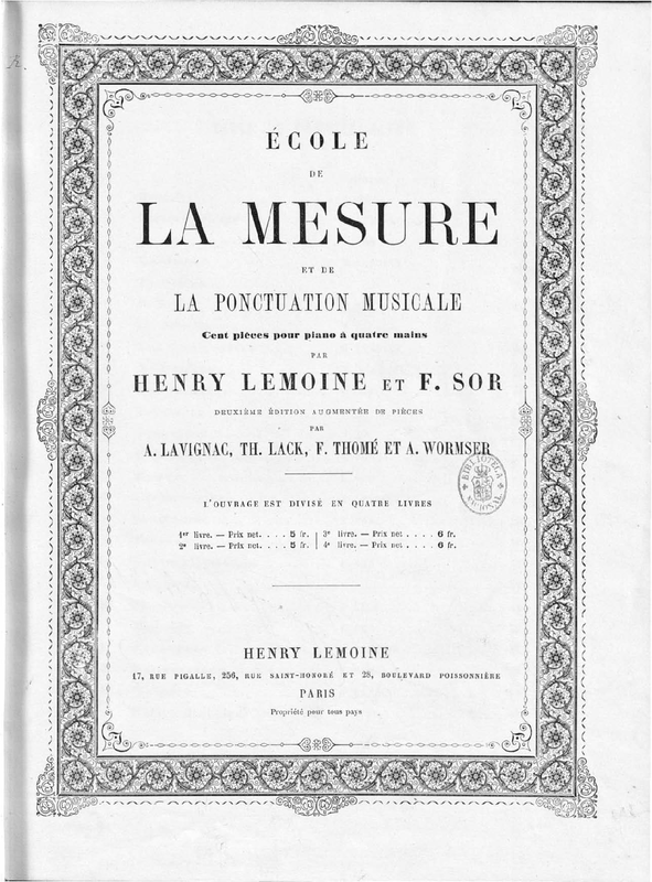 Originally published as a 48-piece collaboration between Henry Lemoine (1786-1854), Op.49, and Fernando Sor (1778-1839), Op.22, later augmented with additional pieces by Théodore Lack (1846-1921), André Wormser (1851-1926), Francis Thomé (1850-1909), and Albert Lavignac (1846-1915).