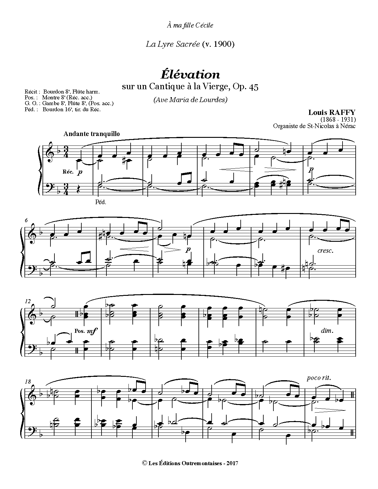 | Work Title | Élévation sur un Cantique à la Vierge |