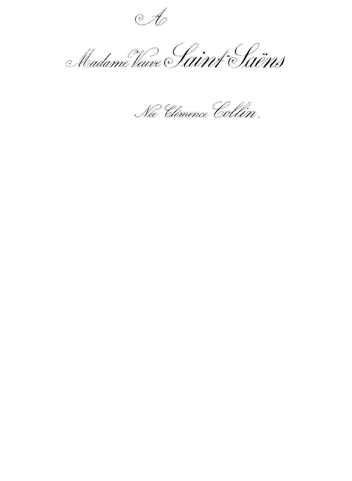 | Dedication | à Madame Veuve Saint-Saëns, née Clémence Collin |