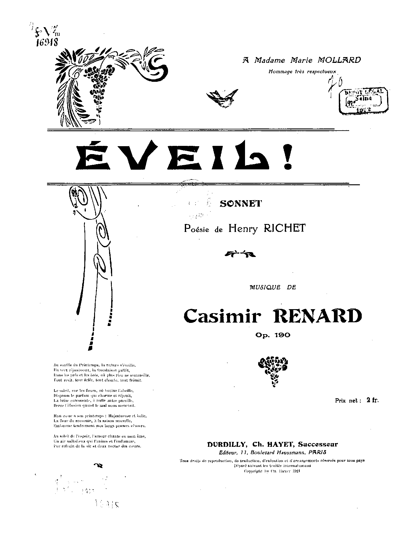 | Copyright Information | Publication noted in the Bibliographie de la France : 111e année, 2e série, Nº 4, 27 Janvier 1922, p.62, reg.335. |