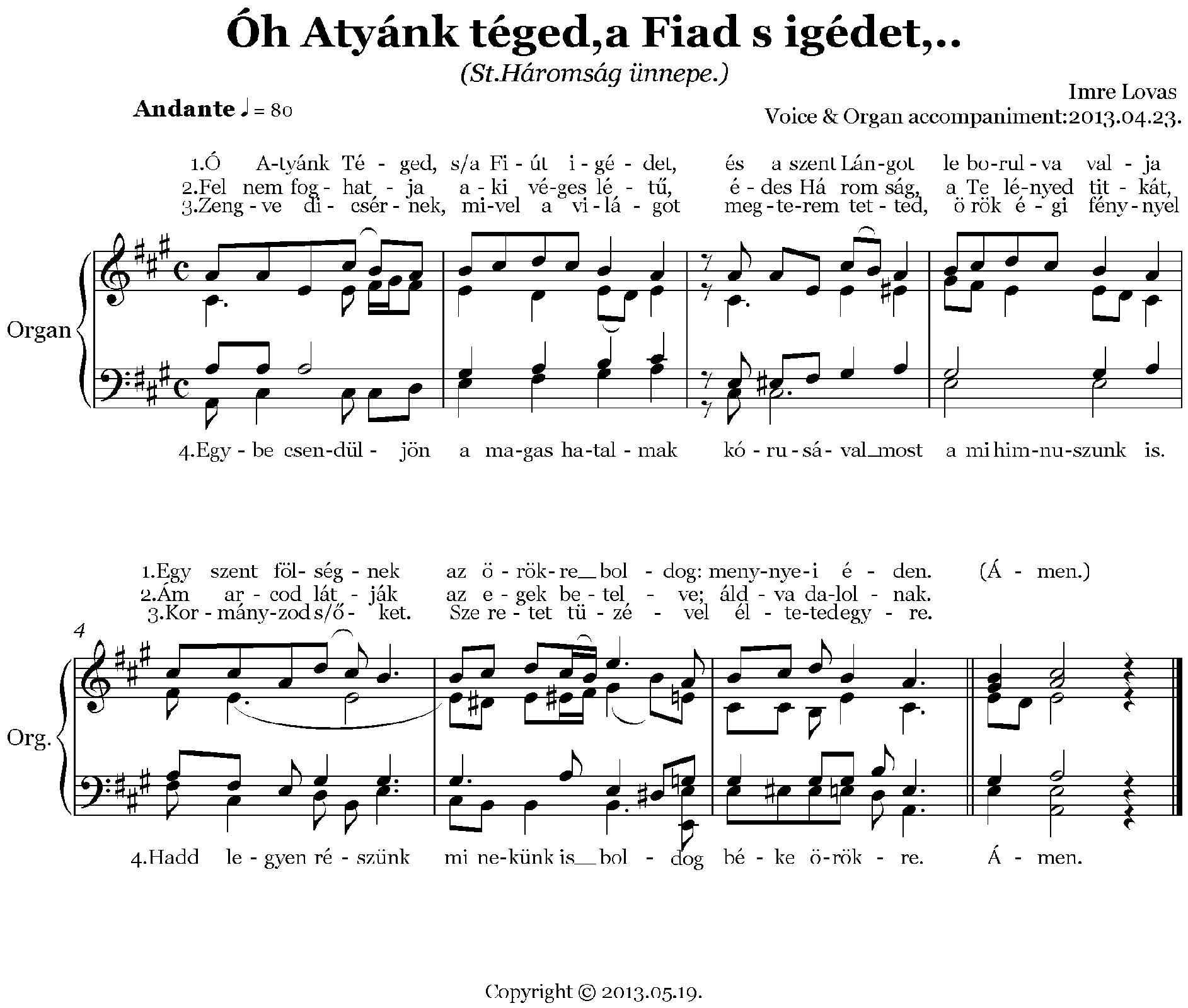 | Work Title | Óh Atyánk Téged a Fiút Igédet |