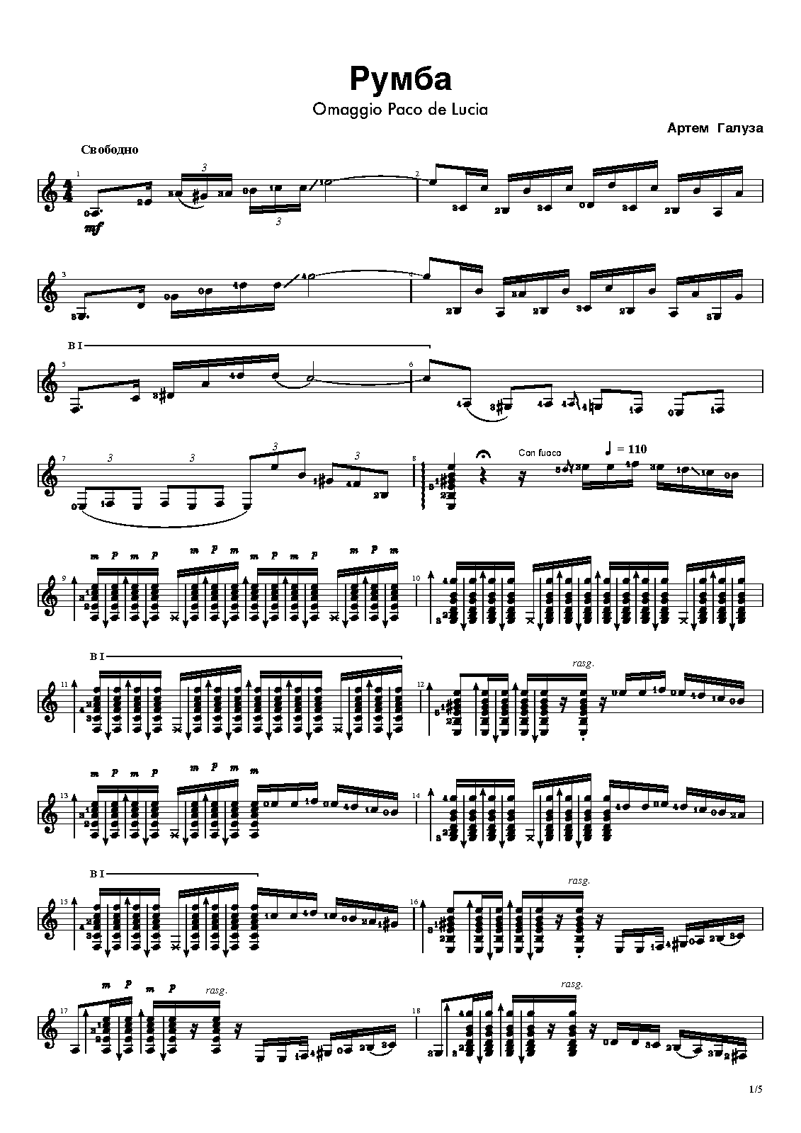 The attached piece “Rumba” is an homage to Paco de Lucía. It is the opening track from the album Colores del Sur by Rainer Maria Nero. The music was composed by Artiom Galuza, a Belarusian-Polish composer writing for classical guitar.