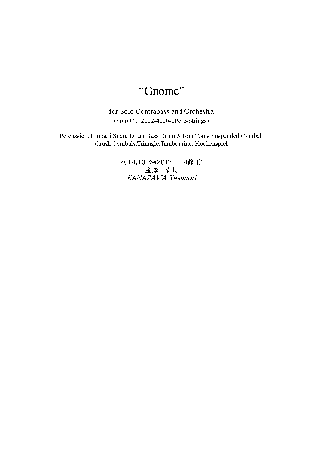 | Work Title | “Gnome” for Solo Contrabass and Orchestra |