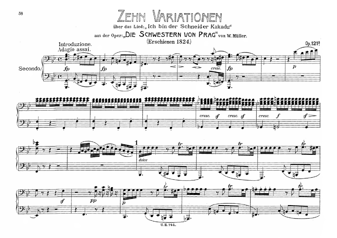 | Name Translations | Variations Kakadu; Kakadu Variations; Klaviertrio-Variationen op. 121a; Variacions Kakadu; 피아노 삼중주를 위한 카카두 변주곡; |