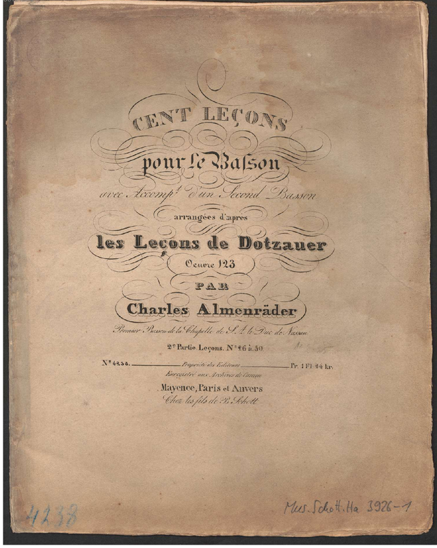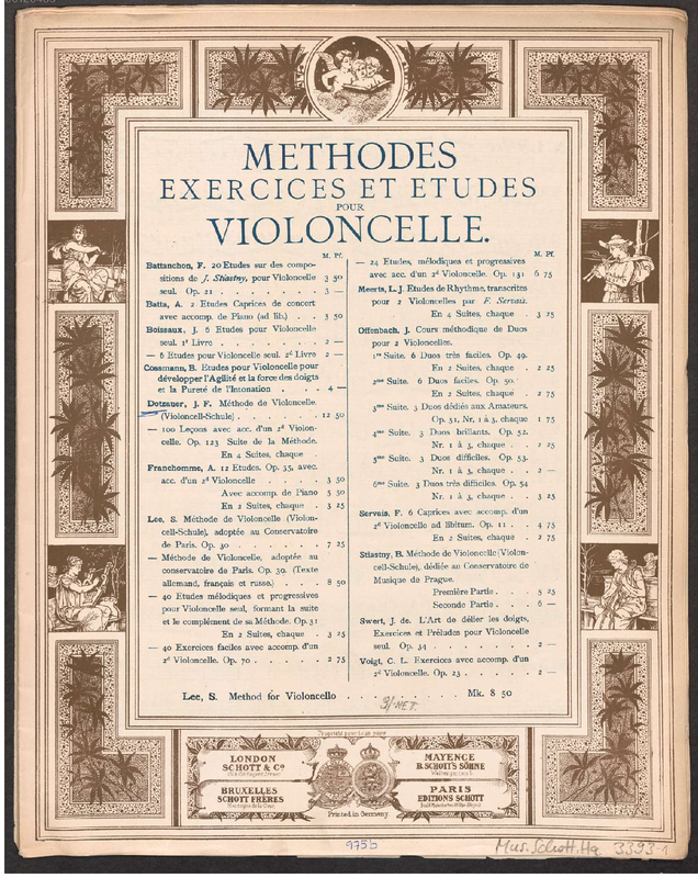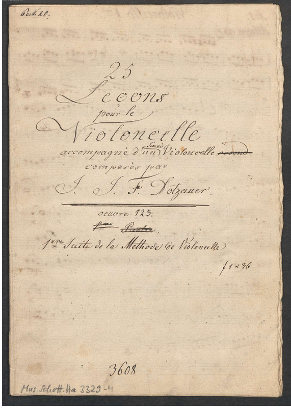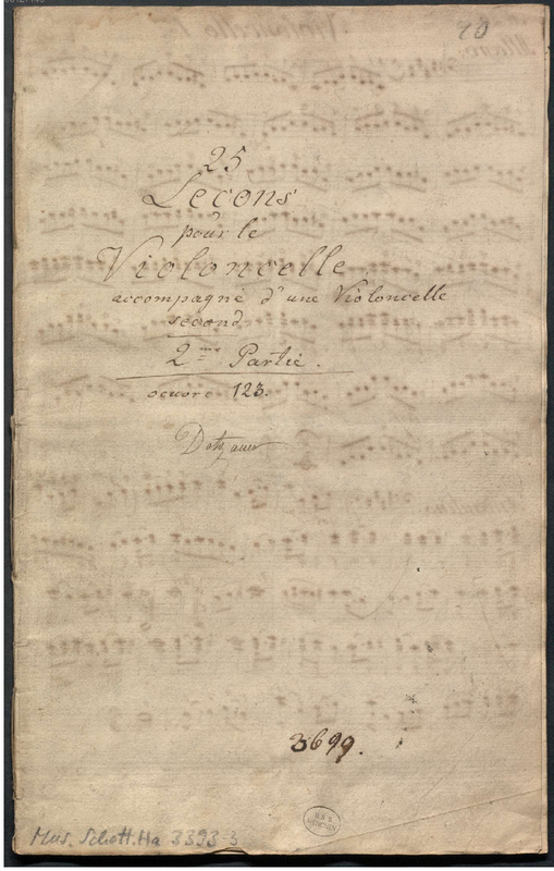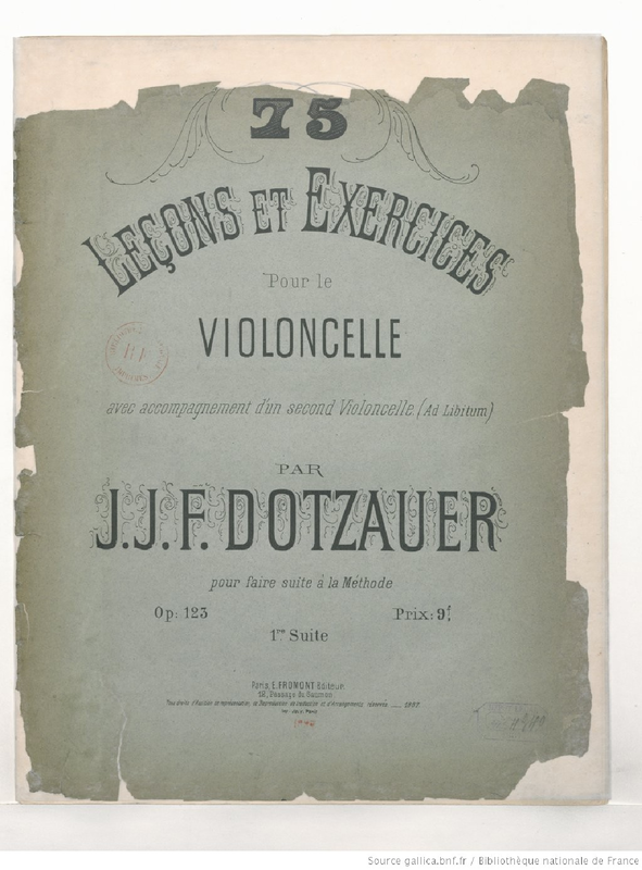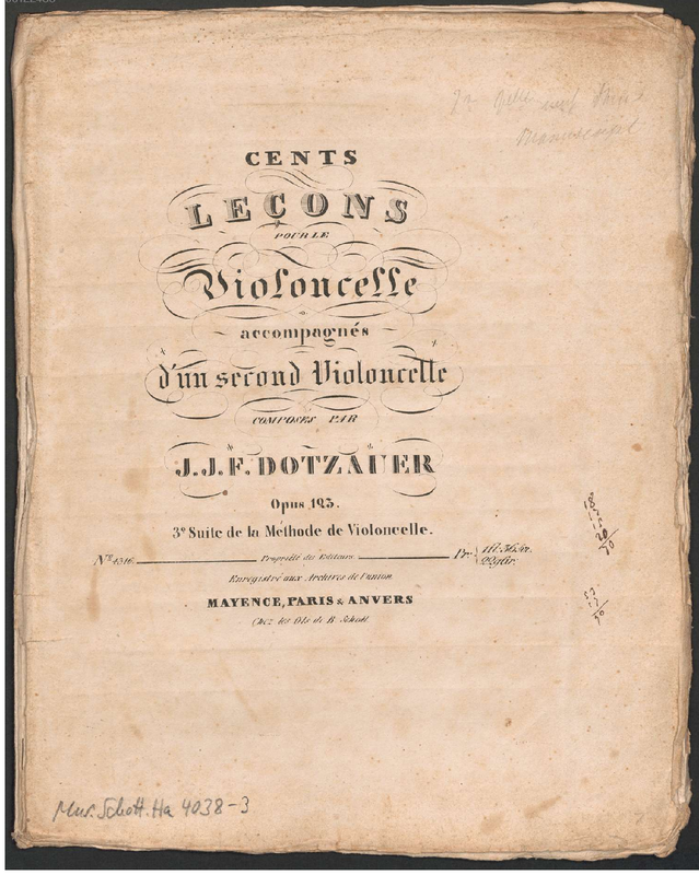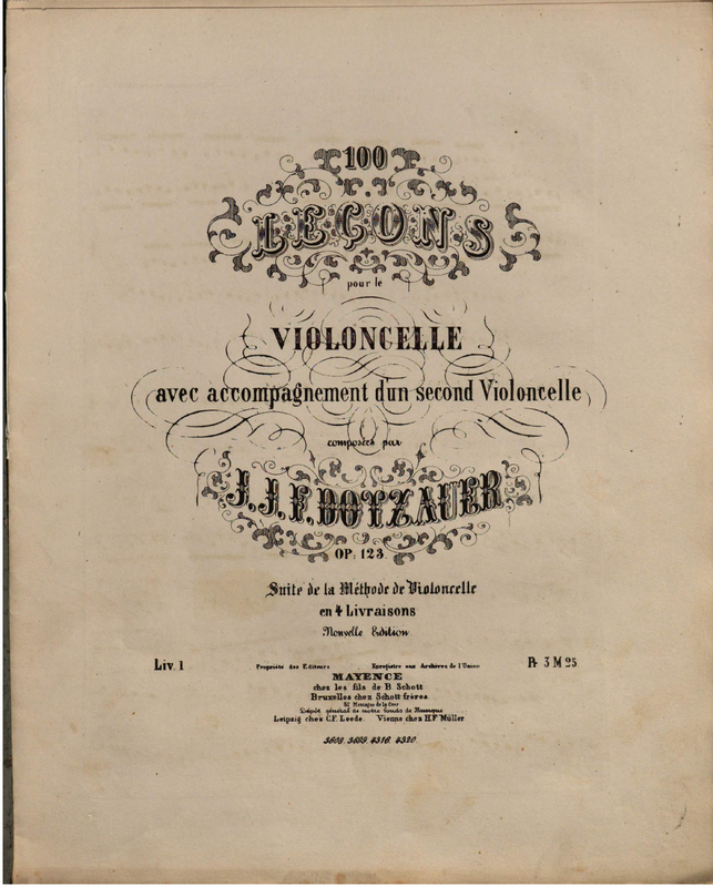 | Alternative. Title | 100 Übungen für Violoncell mit Begleitung eines II Violoncells Cents Leçons pour le Violoncelle accompagnés d'un second Violoncelle. Opus 123. 1re Suite de la Méthode de Violoncelle. (2 Violoncelli.)" |