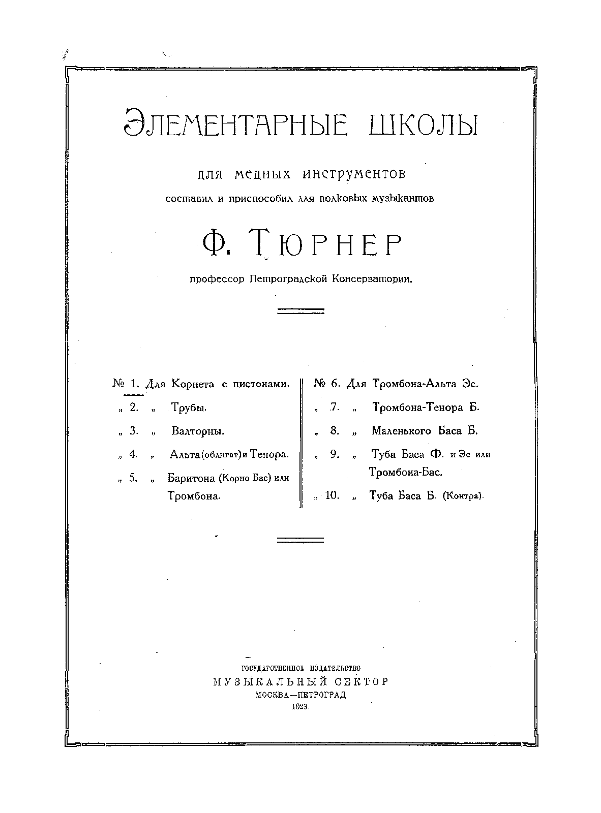 | Alternative. Title | Elementar-Schulen für Metall-Blasinstrumente mit Berücksichtigung des Unterrichts der Militairmusiker in Russland |