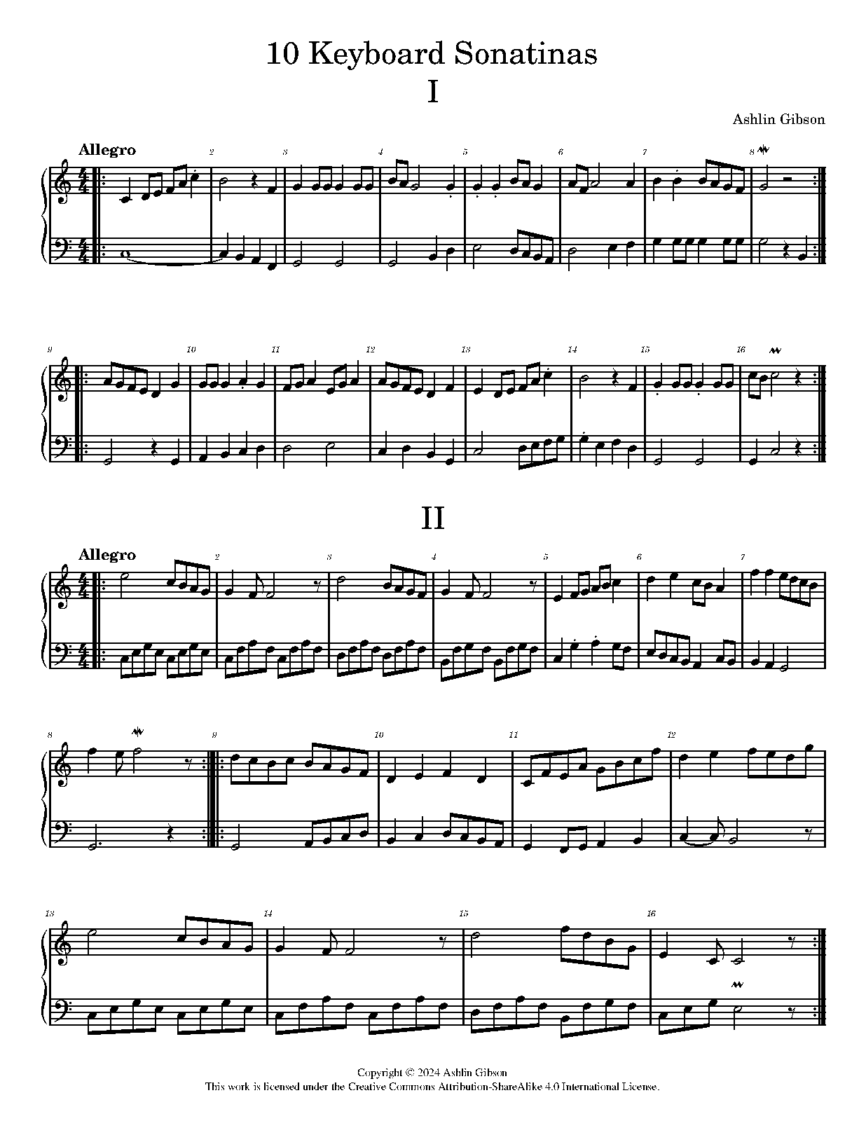 | Movements/SectionsMov'ts/Sec's | 10 sonatinas:
