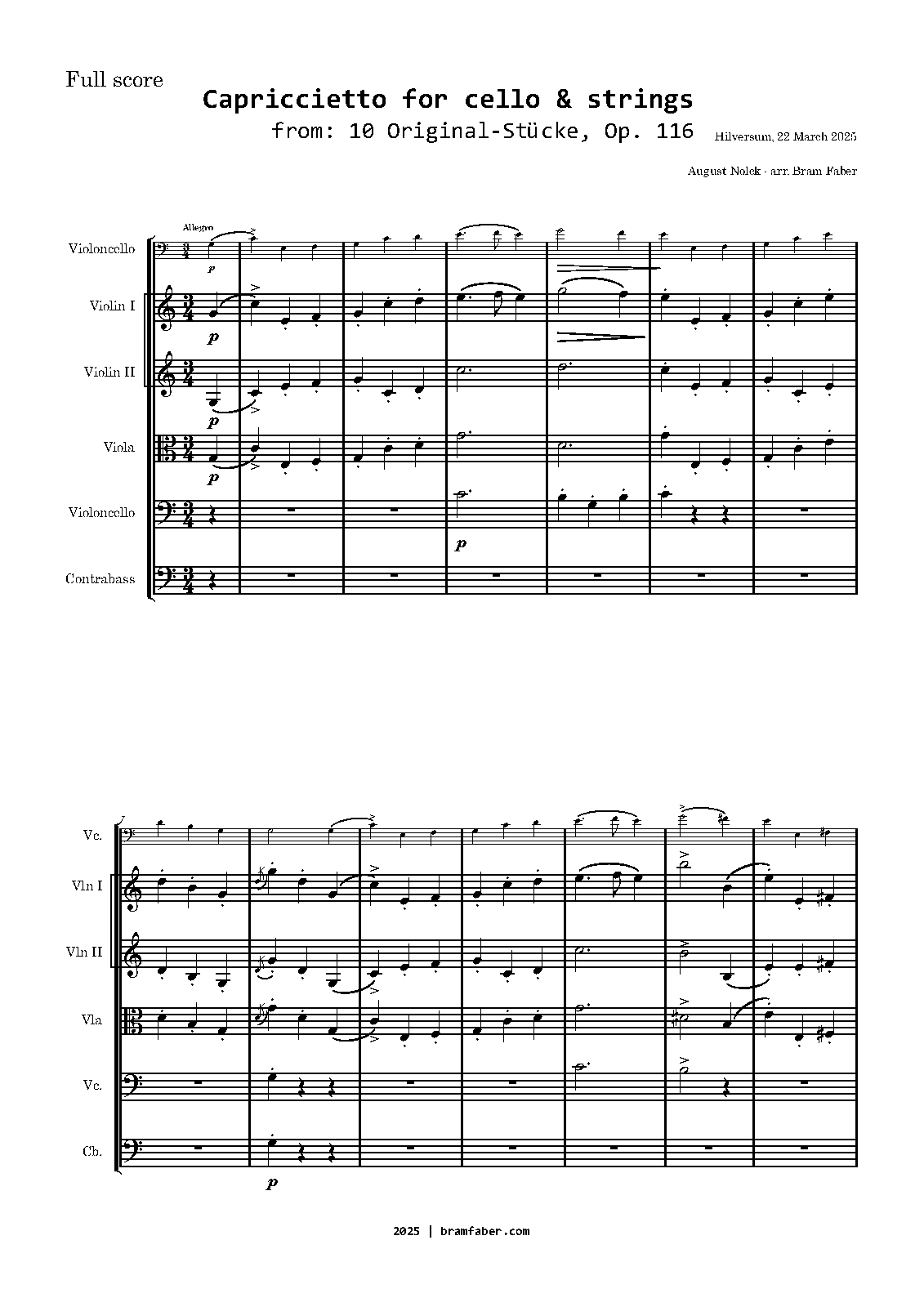 Capriccietto. Original violoncello solo part can be used.