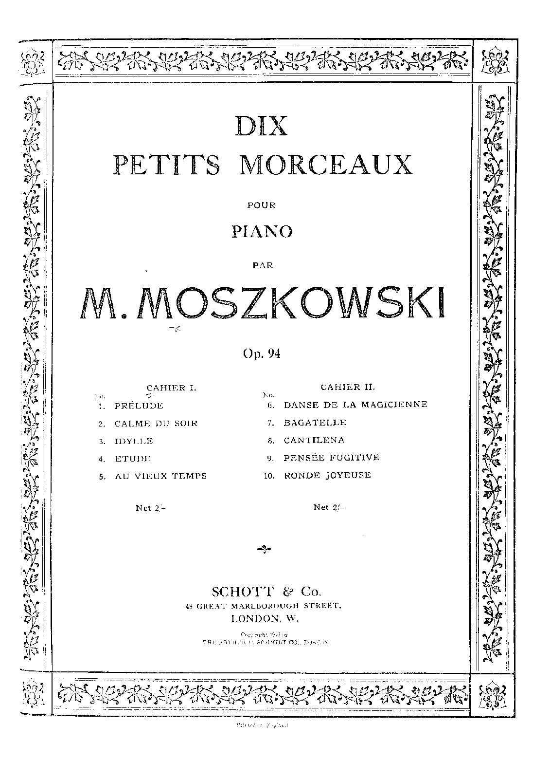 | Dedication | Mme. Berte Cahn (Nos.1-4) Mme. Hélène Chaumont (Nos.5-10) |
