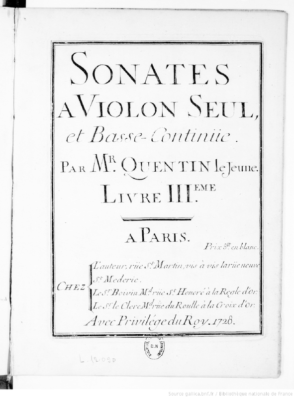 | Alternative. Title | Sonates a Violon seul, et Basse-Continue. |