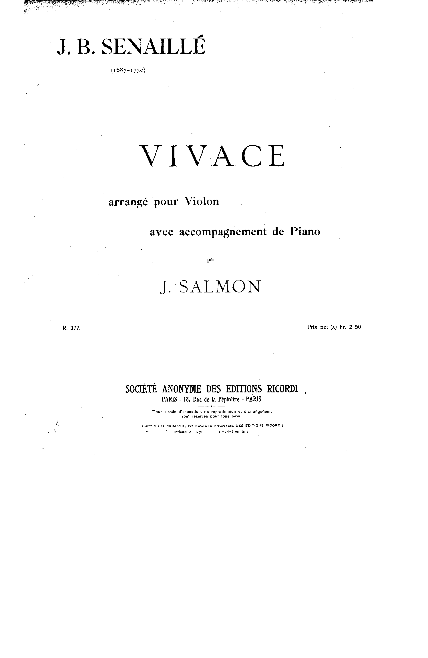 | Alternative. Title | Sonates a Violon seul avec la Baße par Mr. Senallié |