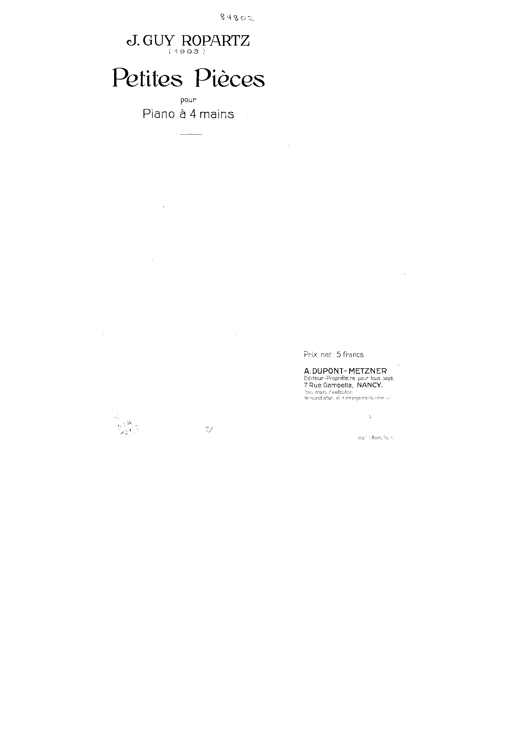 Petites pièces pour piano à 4 mains (Ropartz, Guy)