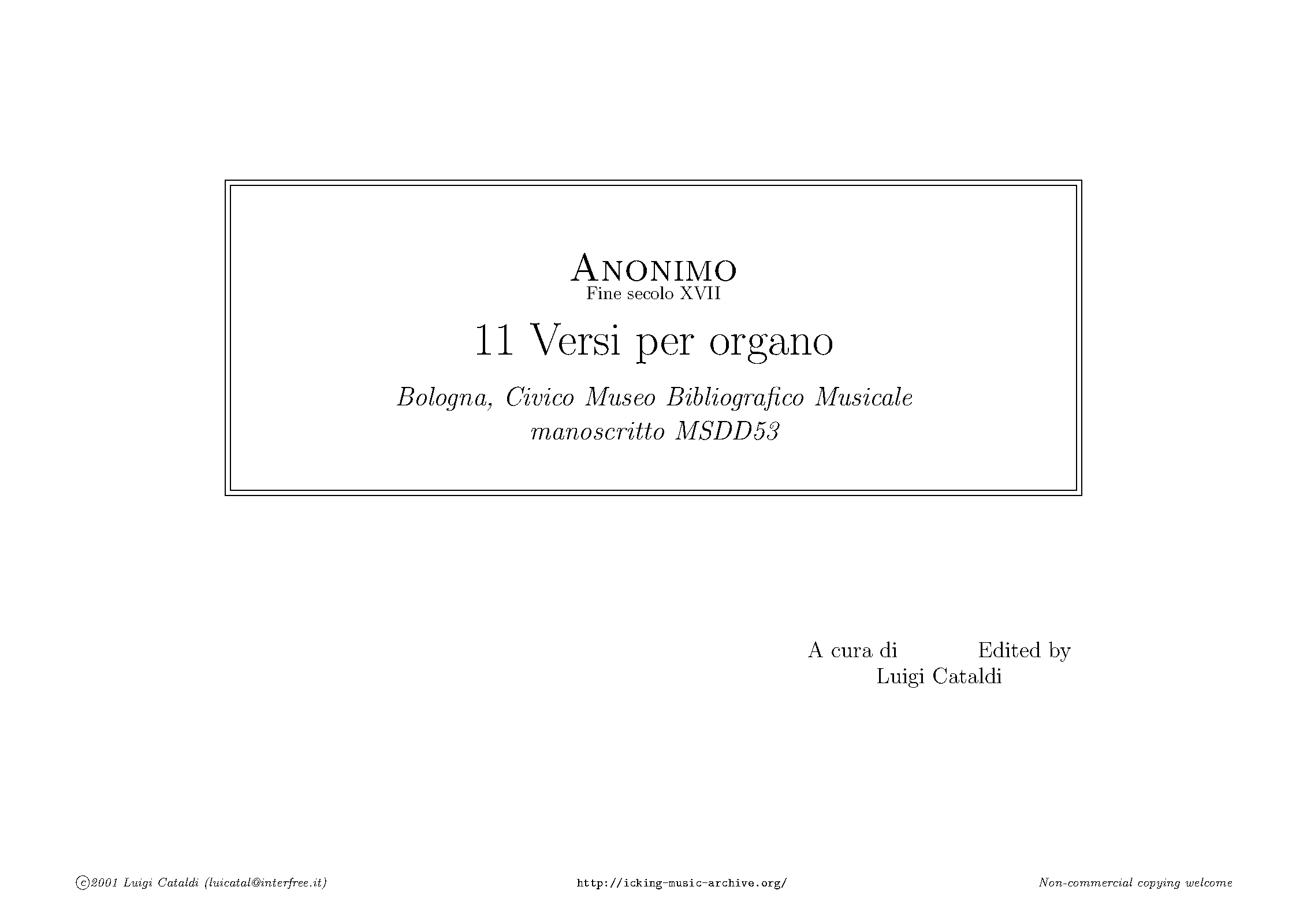 Source served in Bologna, Civico Museo Bibliografico Musicale, manuscript MS DD 53, fols 90v–94v. Anonymous manuscript copied towards the end of seventeenth century.