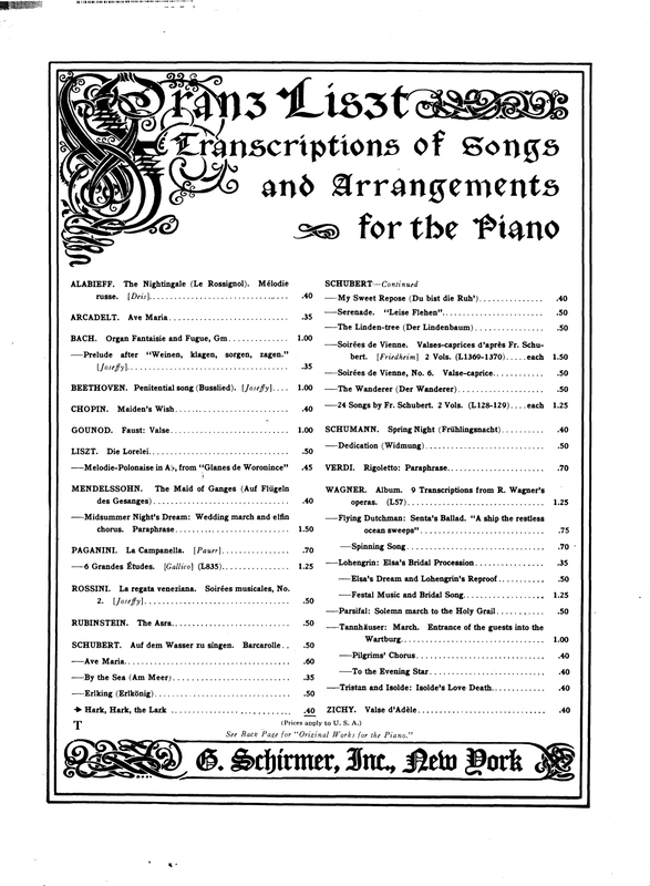 ⇒ 17 more: 2. Auf dem Wasser zu singen (S.558/2) • 2. Auf dem Wasser zu singen (S.558/2) • 3. Du bist die Ruh (S.558/3) • 3. Du bist die Ruh (S.558/3) • 4. Erlkönig (S.558/4) • 4. Erlkönig (S.558/4) • 4. Erlkönig (S.558/4) • 5. Meeresstille (S.558/5) • 6. Die junge Nonne (S.558/6) • 7.Frühlingsglaube (S.558/7) • 7.Frühlingsglaube (S.558/7) • 8. Gretchen am Spinnrade (S.558/8) • 9. Ständchen von Shakespeare (S.558/9) • 10. Rastlose Liebe (S.558/10) • 11. Der Wanderer (S.558/11) • 12. Ave Maria [Ellens dritter Gesang] (S.558/12) • 12. Ave Maria [Ellens dritter Gesang] (S.558/12)