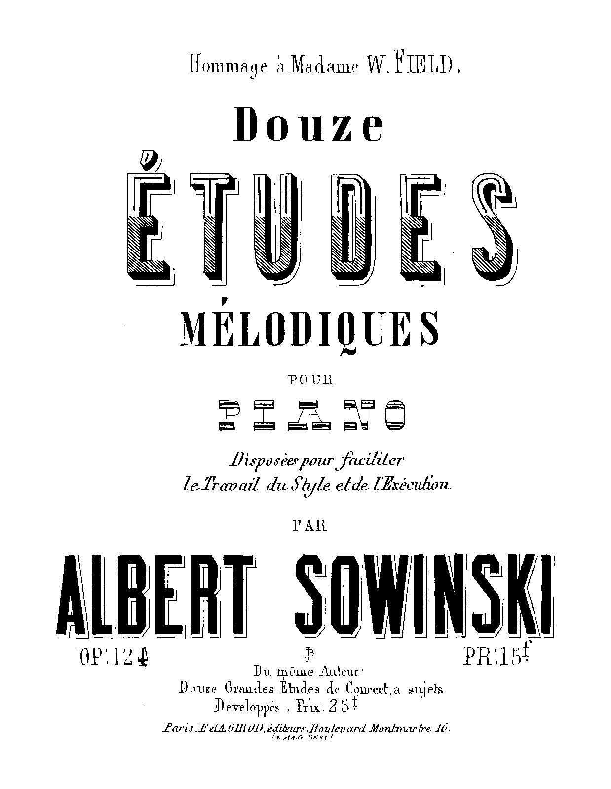 | Alternative. Title | Douze études mélodiques pour piano : disposées pour faciliter le travail du style et de l'exécution |