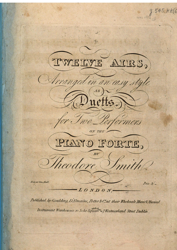 | Alternative. Title | Twelve Airs, Arranged in an easy style as Duetts for Two Performers on the Piano Forte; Smith's Easy Duetts |