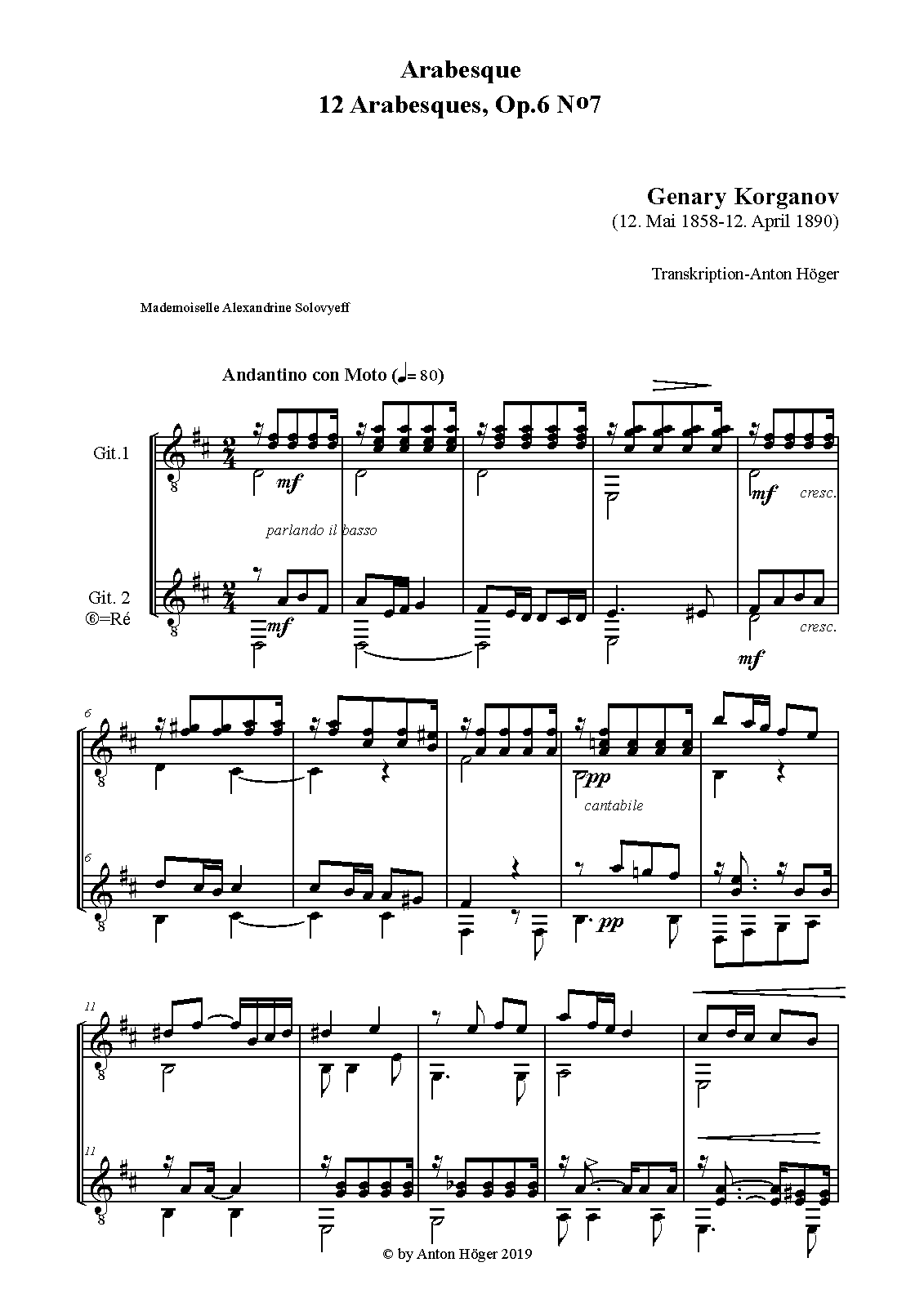| Movements/SectionsMov'ts/Sec's | 12 arabesques: