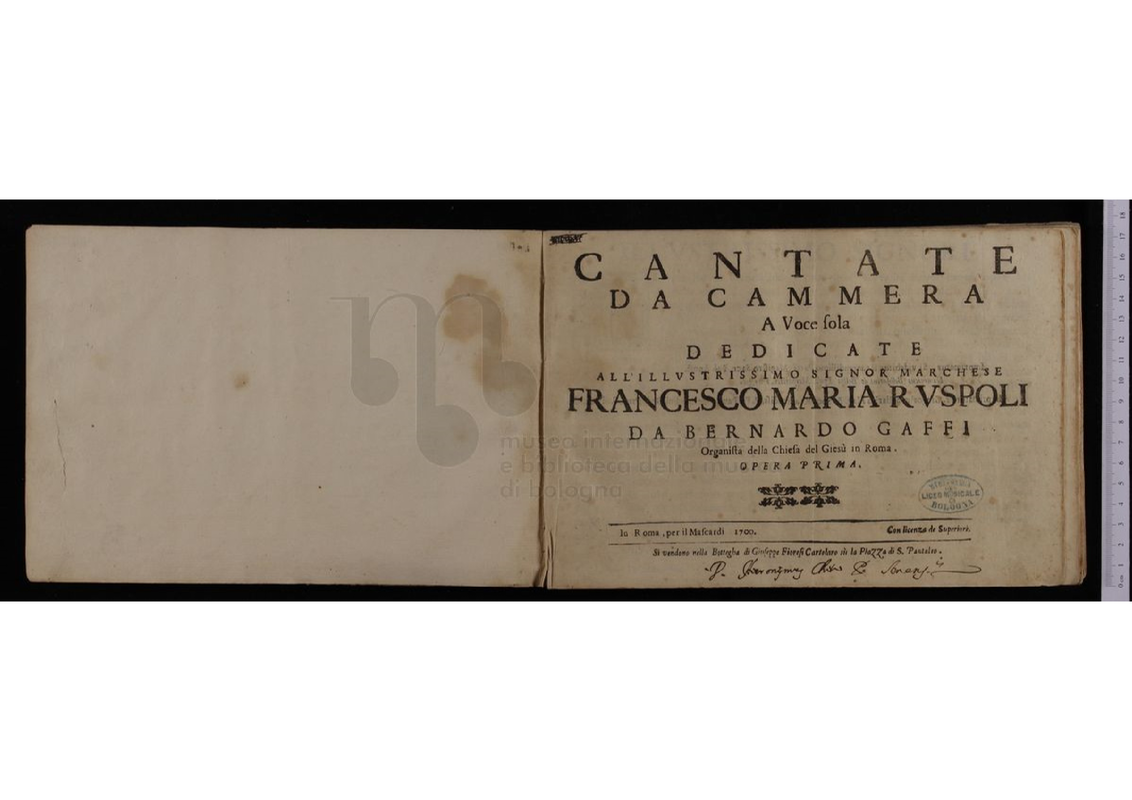 - Cantate da Cammera (sic) a Voce sola Dedicate all'Illustrissimo Signor Marchese Francesco Maria Ruspoli da Bernardo Gaffi Organista della Chiesa del Giesù in Roma. </span>