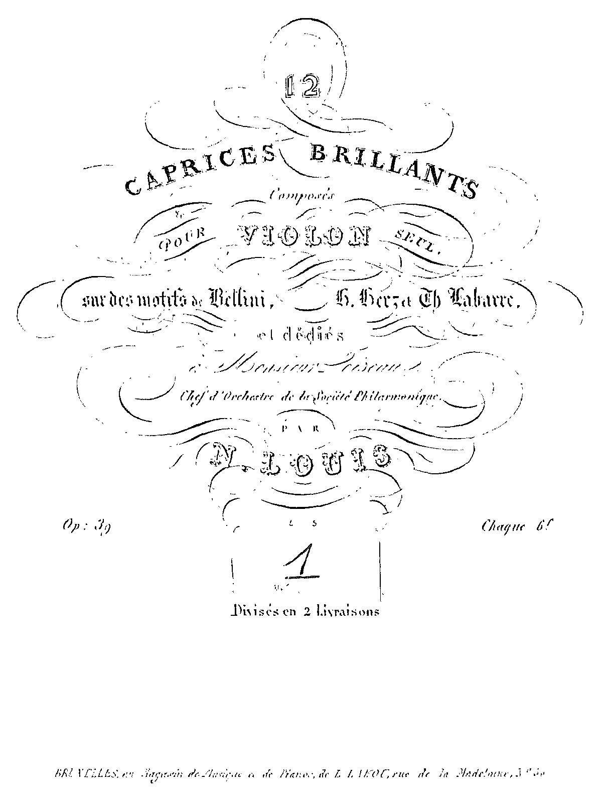 | Dedication | Monsieus Liscau Chef d'Orchestre de la Société Philharmonique |