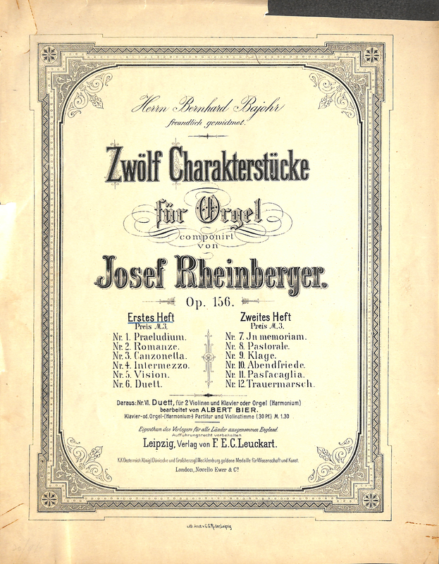 The order of the pieces is specified differently. I followed here the catalog of works written by Rheinberger's wife.