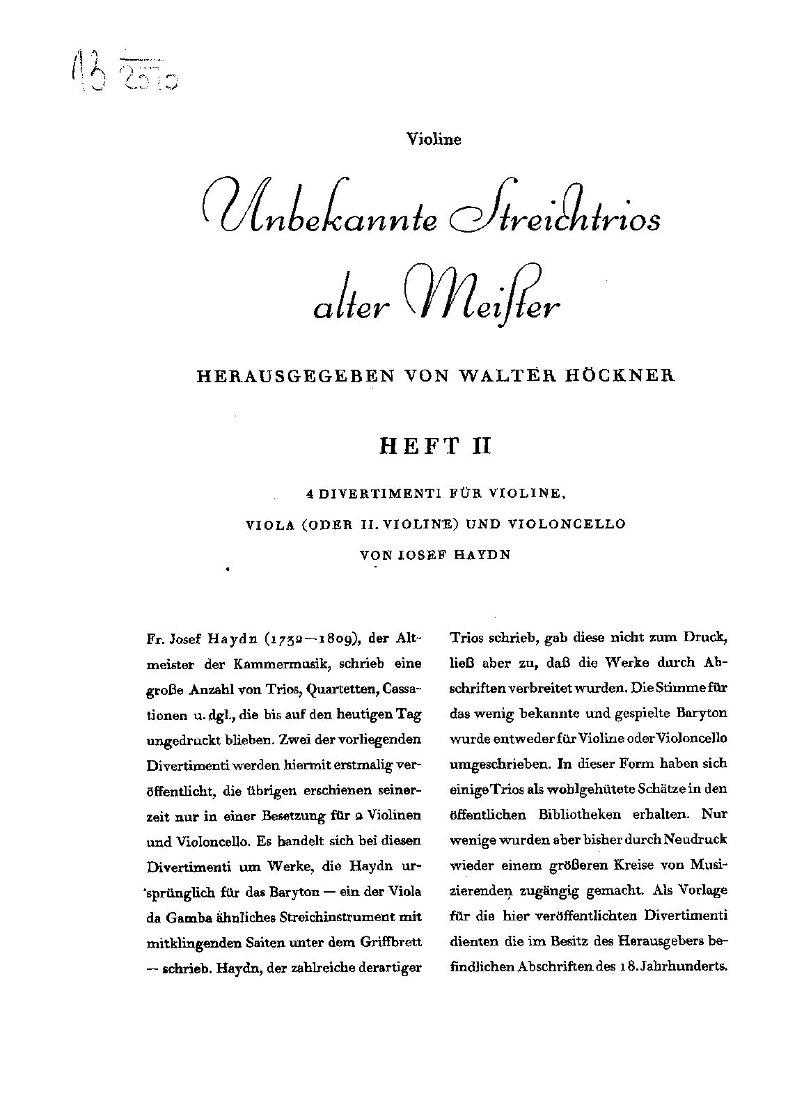 Baryton Trios by Joseph Haydn (Hob. XI)