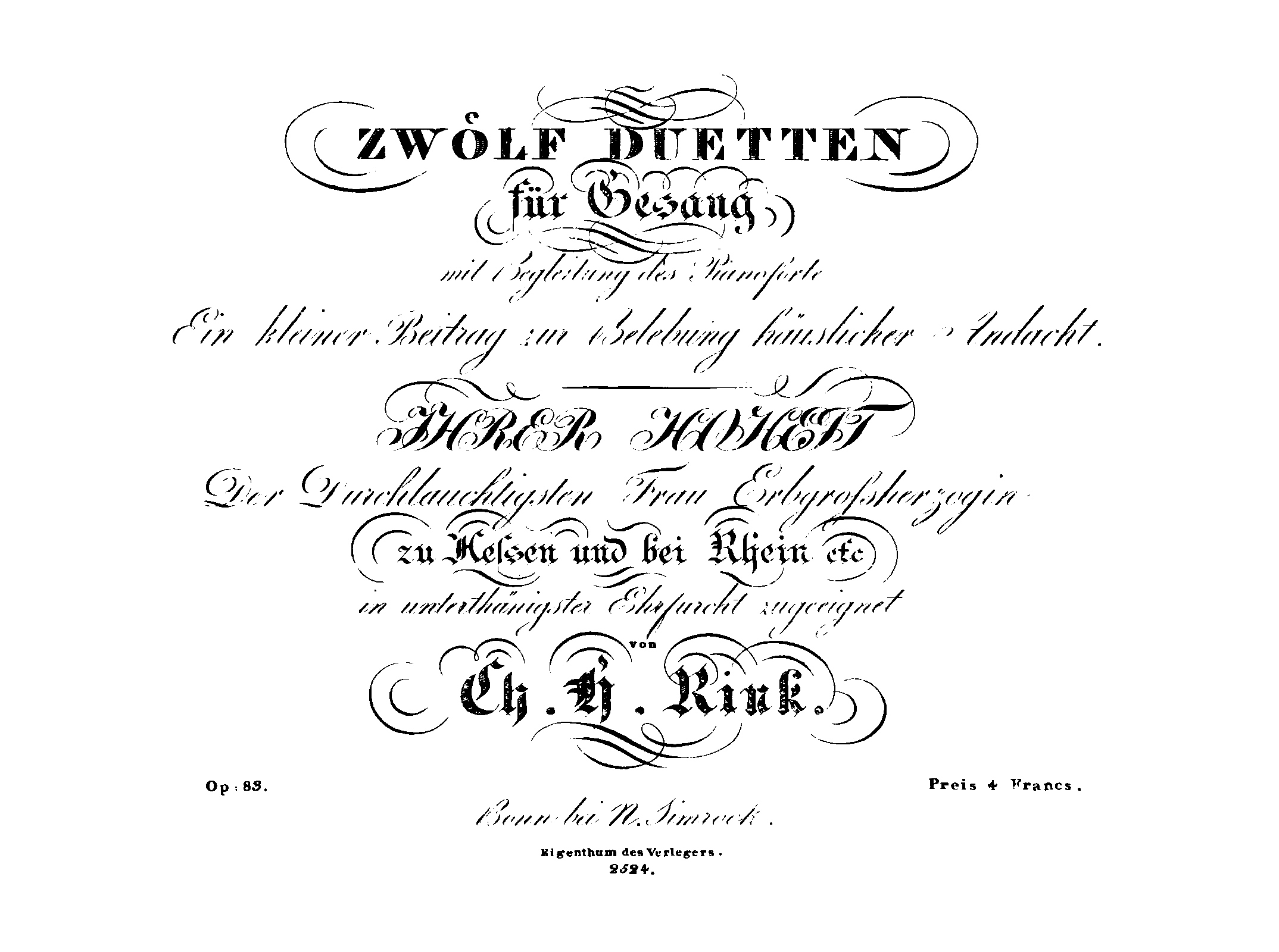 Bonn: N. Simrock, n.d.[1826]. Plate 2524.