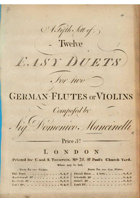 | Alternative. Title | A Fifth Sett of Twelve Easy Duets for two German-Flutes or Violins |