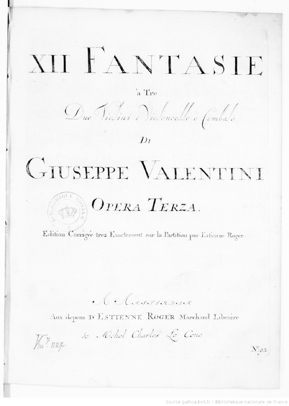 | Alternative. Title | XII Fantasie a tre. Due violini e violoncello o cembalo |