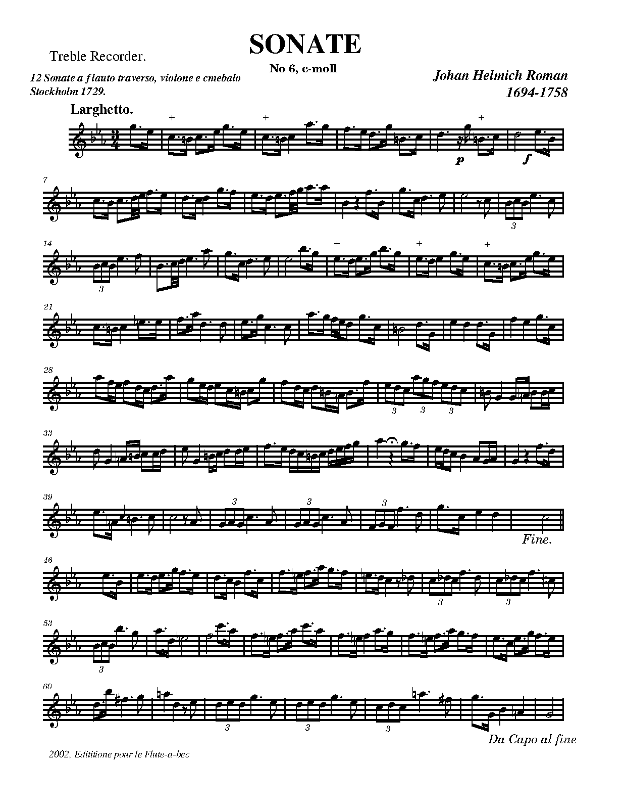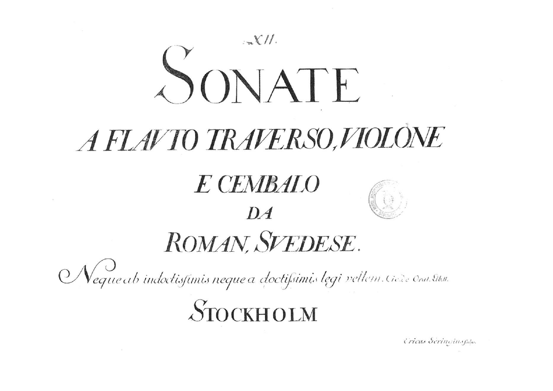 | Alternative. Title | XII Sonate a flauto traverso, violone e cembalo da Roman, Svedese |
