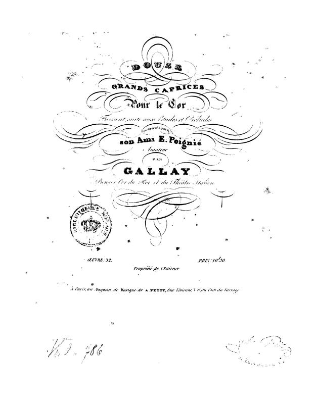 | Work Title | Douze Grands Caprices pour le Cor faisant suite aux Études et Préludes |