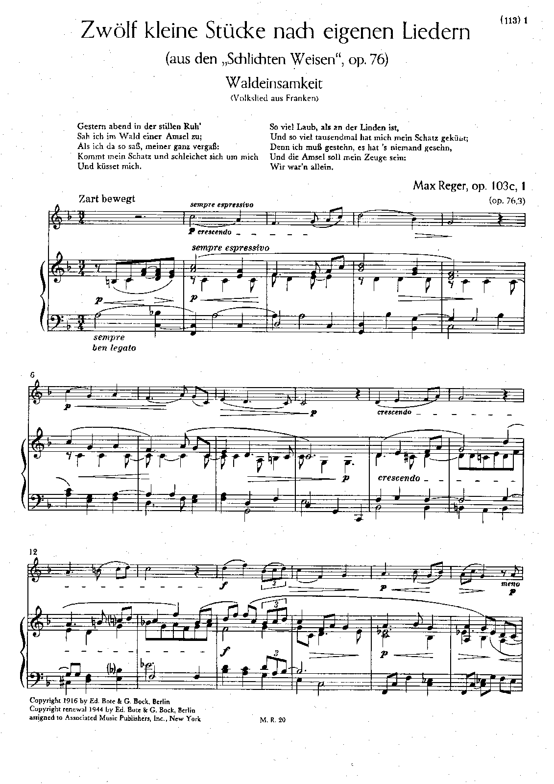 12 Kleine Stücke nach eigenen Liedern, Op.103c (Reger, Max)