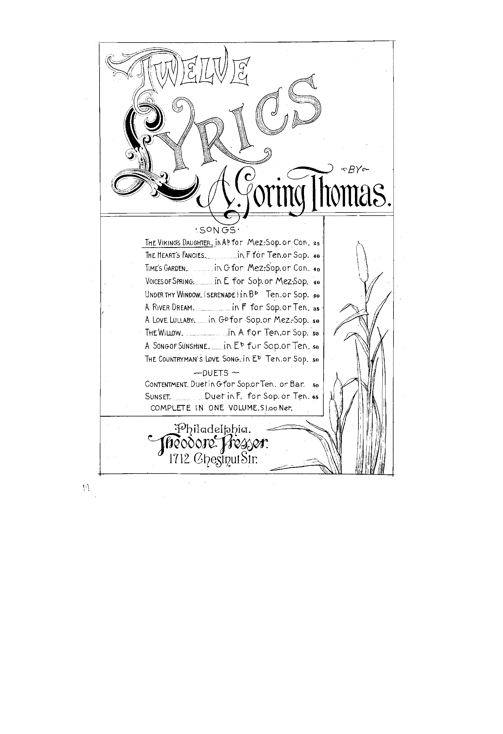 | Genre Categories | Songs; For voice, piano; For voices with keyboard; |