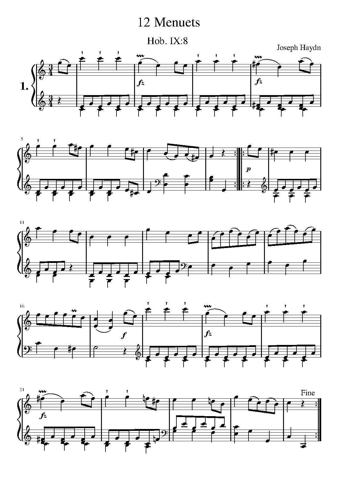 12 Minuets, Hob.IX:1 6 Minuets, Hob.IX:2 16 Minuets, Hob.IX:3 12 Minuets, Hob.IX:4 6 Minuets, Hob.IX:5 12 Minuets, Hob.IX:6 14 Minuets, Hob.IX:7 12 Minuets, Hob.IX:8 6 German Dances, Hob.IX:9 6 Minuets, Hob.IX:9a 12 German Dances, Hob.IX:9b |