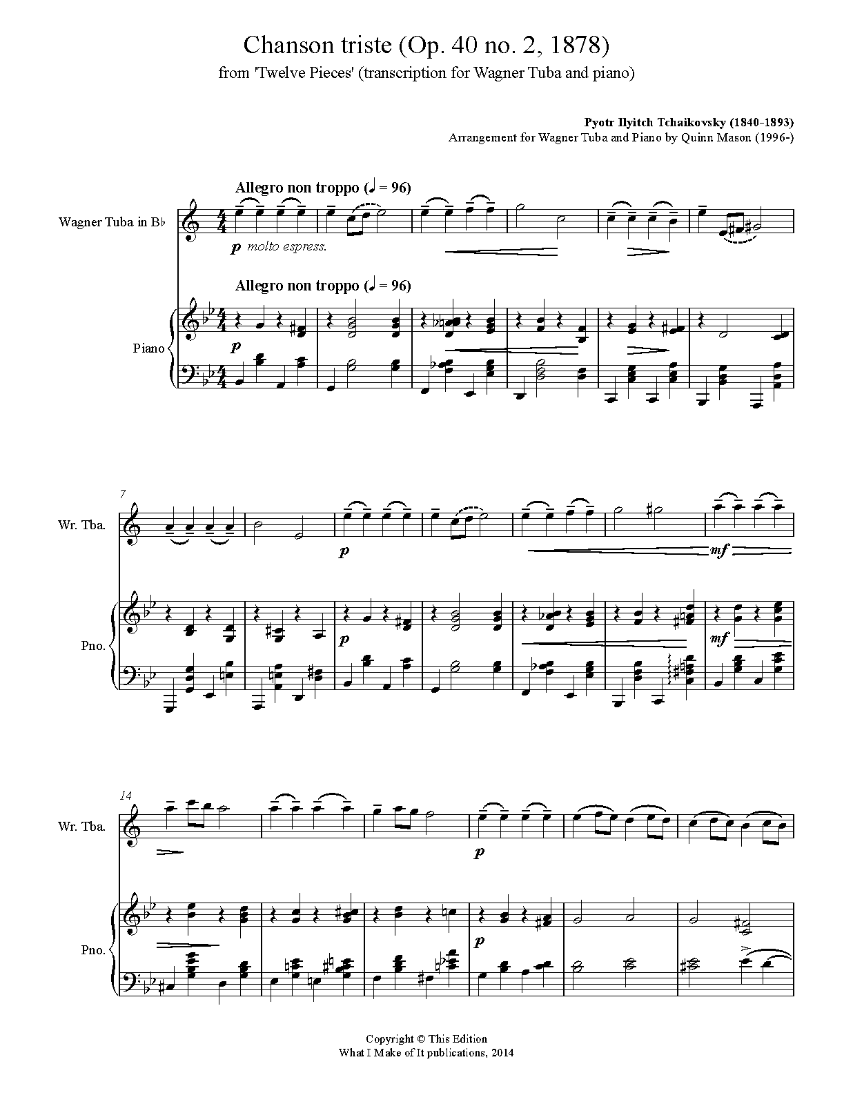 For Wagner Tuba and Piano (Mason)