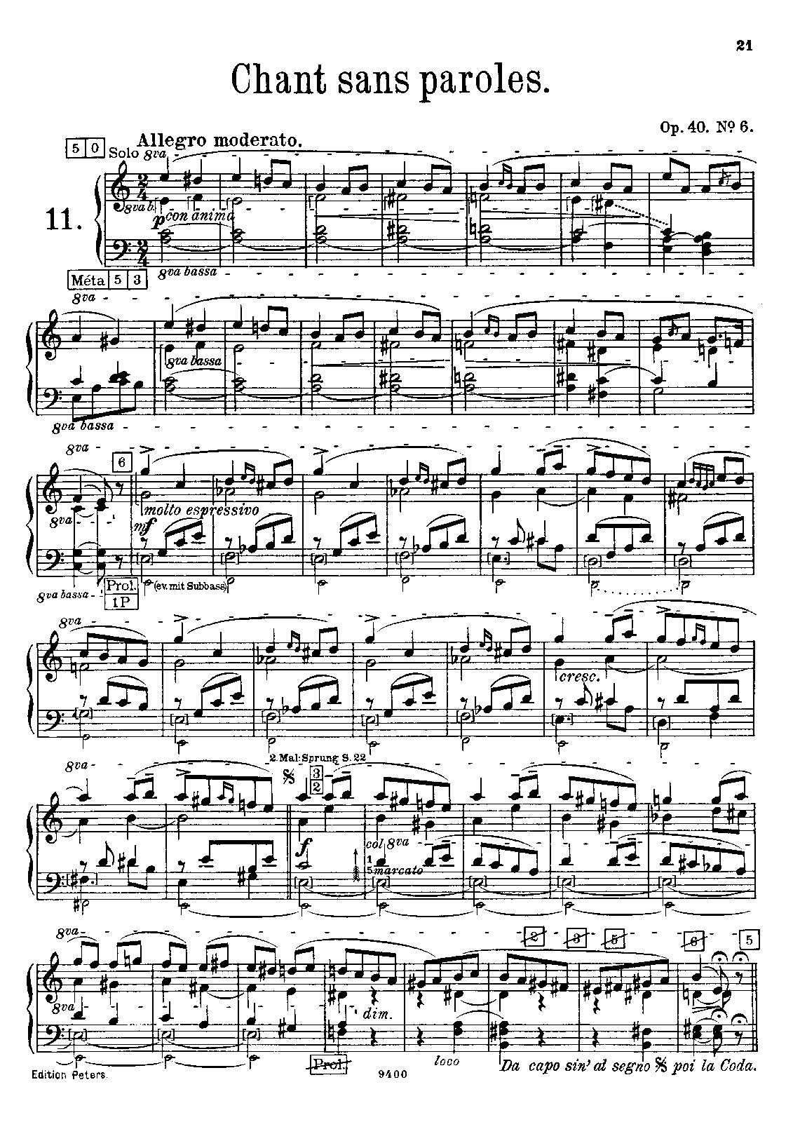 6. Chant sans paroles. Allegro moderato (A minor, 110 bars)