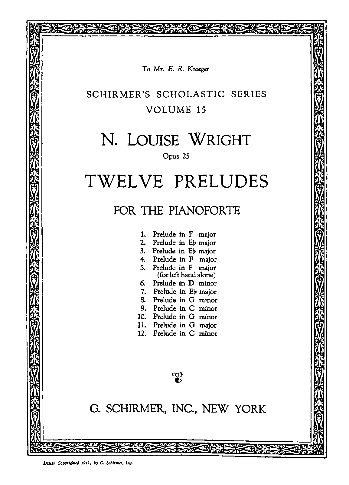 | Dedication | E.R. Kroeger (1862–1934) |