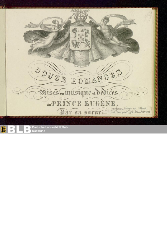 Douze Romances mises en musique et dediees au Prince Eugene par sa soeur